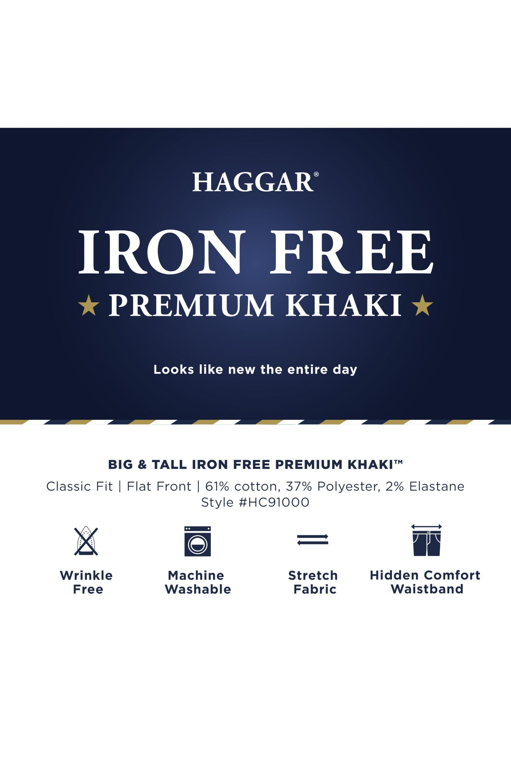 This iron free pant is made for the guy on the go. Featuring wrinkle free, comfort stretch fabric, this pant is ready to wear straight from the dryer. A convenient shirt gripper is an added feature to ensure you never look “undone”.