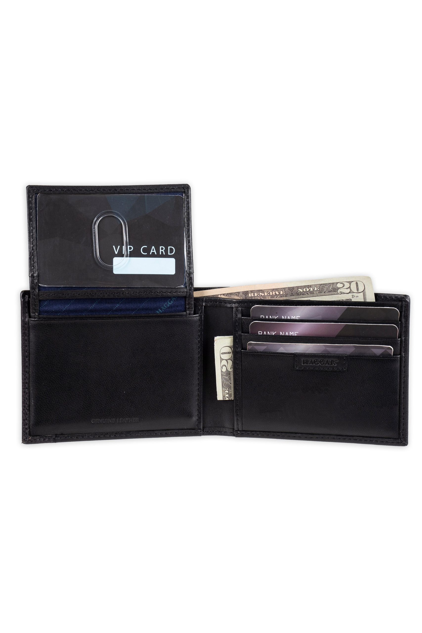 When you see the Haggar name, you know you can count on exceptional style and quality. World class reliability and iconic men’s style combine to give you this wallet with an embossed Haggar logo on the front cover.
